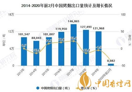 據(jù)中國海關(guān)總署數(shù)據(jù)顯示,2019年全年中國烤煙出口量達(dá)到了121968噸,累計下降4.3%。截止至2020年1-2月中國烤煙出口量達(dá)到8082噸,相比上年同期減少了4556噸,累計下降36.1%。