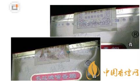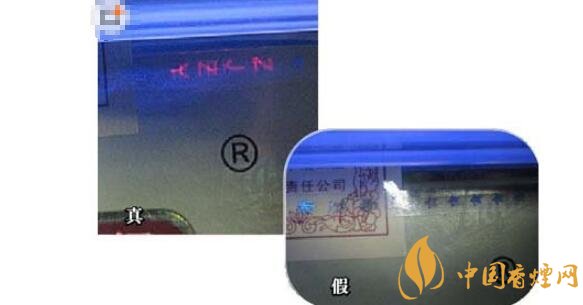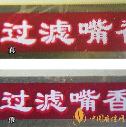 8、真品卷煙的商標(biāo)采用的是凹印,文字邊緣有鋸齒狀;假冒卷煙的商標(biāo)一般采用膠印,文字邊緣無鋸齒狀。