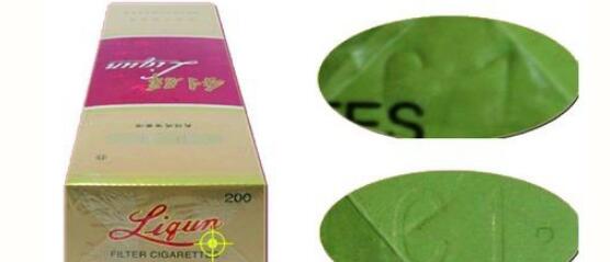 5、小盒拉線。真煙的小盒拉線有麻點(diǎn),且拉線上的字是膠印;假煙的小盒拉線沒有麻點(diǎn),拉線上的字為凹印(上真下假)。