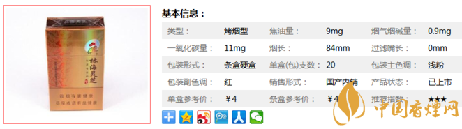 | 類(lèi)型 :烤煙型 | 焦油量 :9mg | 煙氣煙堿量 :0.9mg | 一氧化碳量 :11mg |