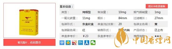 | 類型 :烤煙型 | 焦油量 :11mg | 煙氣煙堿量 :1.1mg | 一氧化碳量 :12mg |