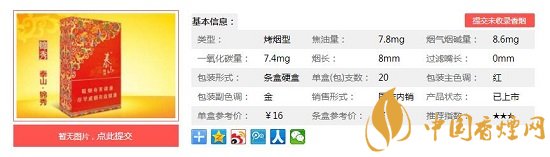 泰山錦秀使用優(yōu)質(zhì)的津巴布韋、美國(guó)、巴西等進(jìn)口煙葉,配以國(guó)內(nèi)醇化兩年以上的云、貴、川上等煙葉,采用獨(dú)特自然醇化與低溫處理工藝,經(jīng)過上百次反復(fù)配伍實(shí)驗(yàn)精做而成。下面一起來看下泰山錦秀的具體參數(shù):一盒20支,煙長(zhǎng)84mm,焦油量8mg,煙堿量0.8mg,一氧化碳量9mg。