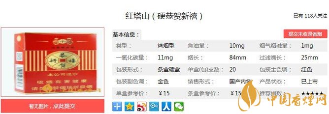恭賀新禧產(chǎn)品明確定位婚慶市場,以婚慶煙消費為突破口,逐步拓展禮品煙市場,最終做到中國喜慶市場的領(lǐng)導品牌,全新的口味和包裝,將給消費者送上一份驚喜,是婚禮上很受歡迎的一款喜慶香煙。經(jīng)香煙網(wǎng)小編市場調(diào)查紅塔山硬恭賀新禧售價為15元/包。