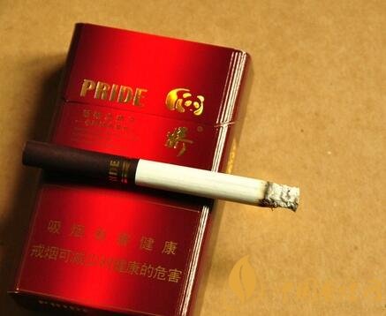 從上到下看,最上面是字母“PRIDE”,右邊是嬌子的LOGO熊貓形象。下面是漢字:“新概念嬌子”,“—中國馳名商標—”等香煙基本信息,這幾行信息的右邊是“嬌子”字樣。底下警語寫著:吸煙有害健康 戒煙可減少對健康的危害,包裝背面與正面基本相似。包裝整體十分簡單新穎。