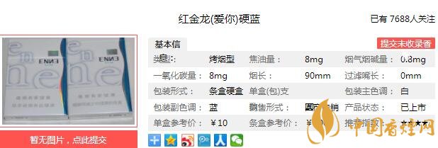 吉祥寓意傳遞關(guān)懷,簡約設(shè)計(jì)時(shí)尚大氣,超細(xì)煙支口味不減。硬藍(lán)愛你以簡約時(shí)尚的包裝設(shè)計(jì)、完美無缺的細(xì)節(jié)品質(zhì)以及淡雅醇和的吸食口味與您驚艷相遇,永遠(yuǎn)陪伴。經(jīng)香煙網(wǎng)小編市場調(diào)查紅金龍硬藍(lán)愛你售價(jià)為10元/包。