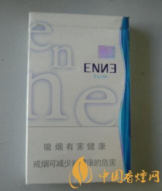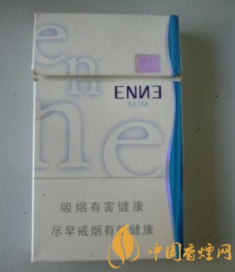 包裝采用瓷白色的干凈背景,配以藍(lán)色的E和N兩個(gè)英文字母的組合疊加運(yùn)用,從上至下,從左至右,個(gè)性鮮明,最下面寫著吸煙有害健康盡早戒煙有益健康的警示語標(biāo)志,右邊是一束成s形的藍(lán)色圖塊,整體包裝簡約明快、時(shí)尚大氣。