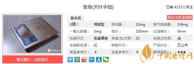 以上便是由香煙網(wǎng)小編為大家介紹的關(guān)于寶島天葉手捻多少錢一包 為大陸游客設(shè)計(jì)的旅游煙的相關(guān)信息,想要了解更多有關(guān)內(nèi)容請(qǐng)點(diǎn)擊:嬌子紅傳奇天子多少錢一包 紅傳奇口感及參數(shù)介紹