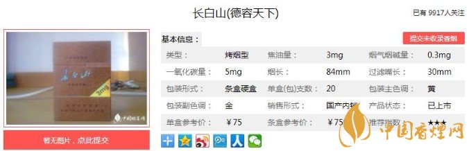 以上便是香煙網(wǎng)小編為大家介紹的關(guān)于長白山德容天下價(jià)格75元一包,復(fù)古的包裝才是亮點(diǎn)!的相關(guān)信息,看完之后大家是不是對(duì)于長白山(德容天下)的相關(guān)信息更加了解呢。大家還想查詢更多的相關(guān)內(nèi)容歡迎點(diǎn)擊:長白山天韻多少錢一包 長白山天韻口感及參數(shù)介紹