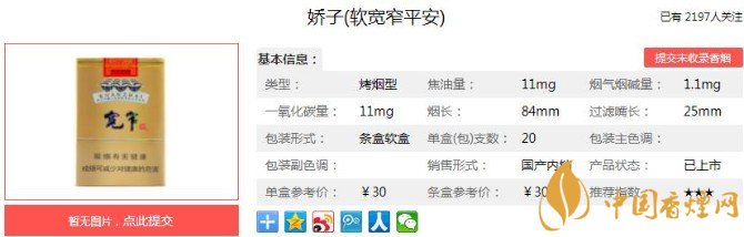 以上便是香煙網(wǎng)小編為大家介紹的關(guān)于嬌子寬窄平安價(jià)格30元一包,傳承寬窄系列的口感!的相關(guān)信息,看完之后大家是不是對于嬌子(寬窄平安)的相關(guān)信息更加了解呢。大家還想查詢更多的相關(guān)內(nèi)容歡迎點(diǎn)擊:嬌子寬窄好運(yùn)細(xì)支多少錢一包 寬窄好運(yùn)細(xì)支口感分析