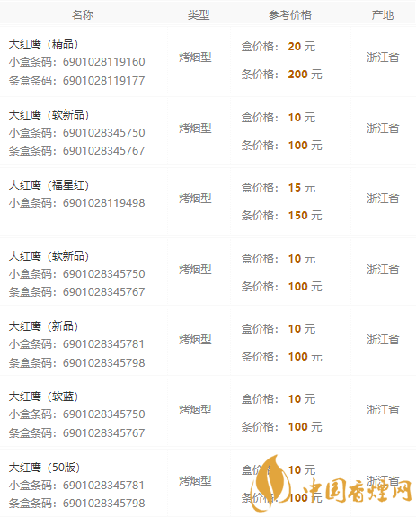 香煙網(wǎng)為您提供2020大紅鷹香煙價(jià)格表和圖片,大紅鷹這個(gè)品牌在浙江是一個(gè)風(fēng)光無限的品牌,這款香煙在老煙民的眼里都是老牌了,那么,您知道2020大紅鷹香煙價(jià)格嗎?趕緊來香煙網(wǎng)看看吧!