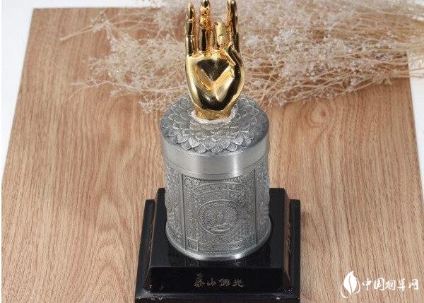 泰山—佛光光錫罐。"史上最貴的煙”之一,錫罐包裝,上面有金光燦燦的佛手,還很刺眼,相信99%的人都沒(méi)有見(jiàn)過(guò)這樣的香煙盒子吧,誰(shuí)能想到這個(gè)東東是一盒煙,打破煙草外包裝的傳統(tǒng)定義啊,光看這個(gè)盒子就知道不是拿在手里抽的,這得有多奢侈啊!市場(chǎng)參考價(jià)2000元/條