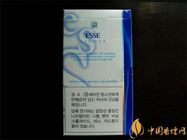 這款香煙在韓國算是主流煙,大眾普及型煙種之一,有著清新淡雅時尚的外觀,藍白相間,非常的漂亮??诟写枷汊?,淡淡的煙氣非常細(xì)膩,燃燒性能很好,品質(zhì)也非常不錯。這款韓國esse香煙多少錢一盒?在小編提供的韓國esse香煙價格表和圖片中,它的性價比不錯,它的零售價為10元/包。