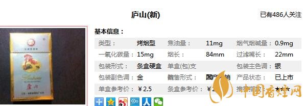 廬山香煙參數(shù)信息