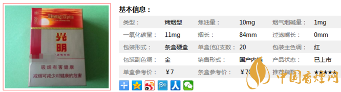 光明香煙是合肥的香煙品牌,“光明”卷煙是合肥卷煙廠60年代老品牌,當(dāng)時被譽為“大火把”,現(xiàn)已整合進“黃山”品牌。是一款經(jīng)典又好抽的香煙,下面就由香煙網(wǎng)小編帶大家來了解一下光明香煙的相關(guān)參數(shù)信息。