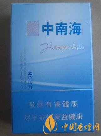 包裝以海藍色為主色調(diào),白色與銀色為輔。煙盒正面翻蓋處一個鐳射防偽標志,很精致也很漂亮,旁邊印有中南海的三個字,通過光的反射總能讓人感覺很靚很風尚。總的看這藍色風尚包裝給人一種地中海風情。
