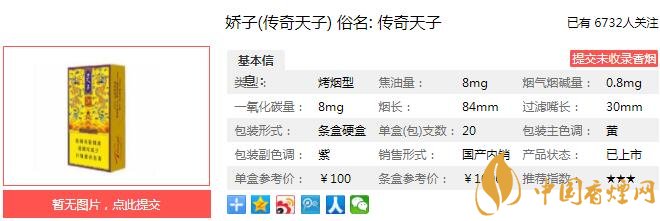 利群夜西湖煙支長84mm,過濾嘴長30mm,嬌子傳奇天子在原料甄選和制煙工藝這兩個環(huán)節(jié)完全采用手工精選,在包裝制作上也采用手工制作方式。在科技減害上,嬌子傳奇天子集自主專利的復合生物制劑與納米減害技術之大成,使減害指標提前5年達到國標,其焦油釋放量也有效降至8mg/支,引領科技減害全新潮流。下面我們一起來看嬌子傳奇天子的參數(shù)信息:焦油量:8mg 煙堿量:0.8mg 一氧化碳量:8mg