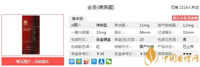 秉承自然靈秀之氣,形神俱清:選用國內(nèi)云貴高原小產(chǎn)區(qū)清香型優(yōu)質(zhì)煙葉和世界著名煙葉產(chǎn)區(qū)名貴煙葉,復烤后選用最醇和之中部,經(jīng)天然山東儲藏三年以上。本草萃香,優(yōu)雅飄逸: 配以第二代“金圣香”本草萃取精華和美國IFF香精香料精調(diào)而成。煙氣整體平衡協(xié)調(diào),想起優(yōu)雅飄逸、自然醇和、透發(fā)感極強。經(jīng)香煙網(wǎng)小編市場調(diào)查金圣典藏售價為38元/包。