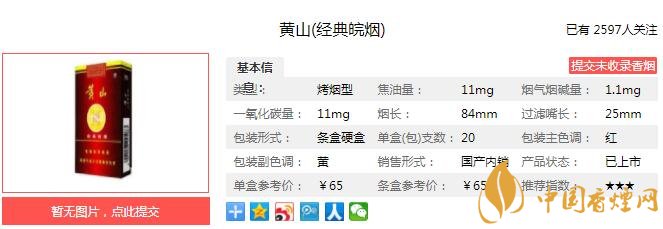 煙氣細(xì)膩柔和,成團(tuán)性好,香氣質(zhì)較好,較優(yōu)雅,透發(fā)性好,香氣量較充足,協(xié)調(diào)性好,口感較好,余味舒適。上市以來很受消費(fèi)者的歡迎,只是如今歸于黃山旗下也不知是否已停產(chǎn),早聽聞是款好煙可惜難覓蹤跡。經(jīng)香煙網(wǎng)小編市場(chǎng)調(diào)查黃山經(jīng)典皖煙售價(jià)為65元/包。