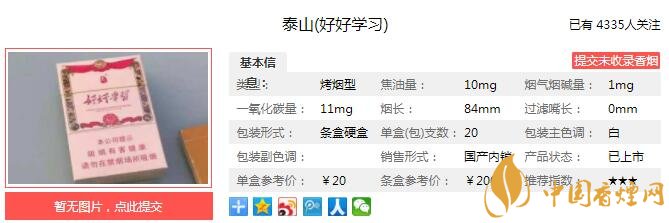 以上便是由香煙網(wǎng)小編為大家介紹的關(guān)于泰山好好學(xué)習(xí)口感好不好 泰山好好學(xué)習(xí)價(jià)格介紹的相關(guān)信息,想要了解更多有關(guān)內(nèi)容請(qǐng)點(diǎn)擊:紅塔山硬金出口價(jià)格 紅塔山硬金出口口感及參數(shù)介紹