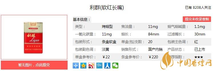 在配方上,選擇國(guó)內(nèi)外香氣足、煙堿適中、焦油含量低的優(yōu)質(zhì)煙葉,精心配比,在化學(xué)成分比例協(xié)調(diào)的基礎(chǔ)上,配合特殊的優(yōu)質(zhì)進(jìn)口香精香料,保證其突出的香氣風(fēng)格和特征。經(jīng)香煙網(wǎng)小編市場(chǎng)調(diào)查利群軟紅長(zhǎng)嘴售價(jià)為22元/包。