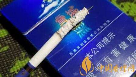 比較有趣的是濾嘴前端,款款的亮金色圓環(huán)內,有藍色花體的英文——Snow World,到底雪域是否如此直譯,沒研究過,回頭還要請教精通英文的朋友。圓環(huán)上部是金色的雪域字樣。