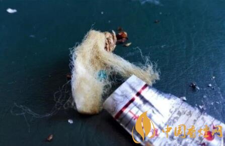 下面兩張圖片,是過(guò)濾嘴中內(nèi)置爆珠剪開(kāi)后的構(gòu)造。爆珠的顏色為藍(lán)色,里面的海綿是一段完整未分離的樣式。