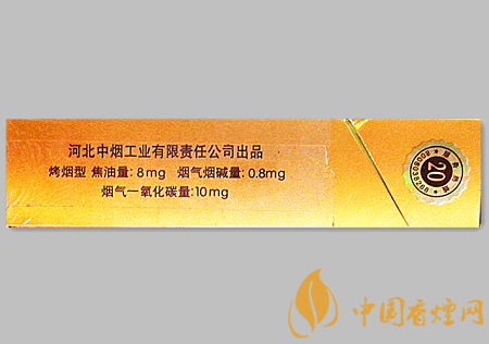| 類型 :烤煙型 | 焦油量 :8mg | 煙氣煙堿量 :0.8mg | 一氧化碳量 :10mg |
