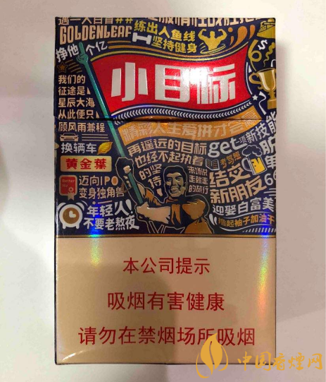 這是中國近兩年我國上市公司沒多久的一款黃金葉香煙,煙盒包裝設(shè)計進行比較潮,13元/包的價格也容易被大眾可以接受,這款黃金葉小目標(biāo)的煙嘴呈藍色,看上去都是比較研究高端,尤其是包裝上“小目標(biāo)發(fā)展成就大夢想”的宣傳語很受人關(guān)注喜愛。