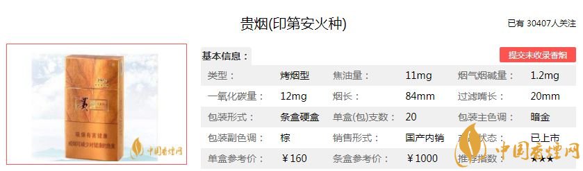 貴煙印第安火種100元/包,這款煙的焦油量:11mg,煙堿量:1.0mg,一氧化碳量:12mg煙氣醇和,口感圓潤舒適。