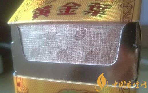 金色打造,也用上了閃光的設(shè)計(jì),而且葉片煙標(biāo)更是離不開,正面都有著暗淡底紋,上半盒身的圖案包圍著黃金葉紅色粗字和那簡單深造的煙標(biāo)葉片,因?yàn)楦牧舜肿志菊Z的原因使到背面與正面一個(gè)樣了。