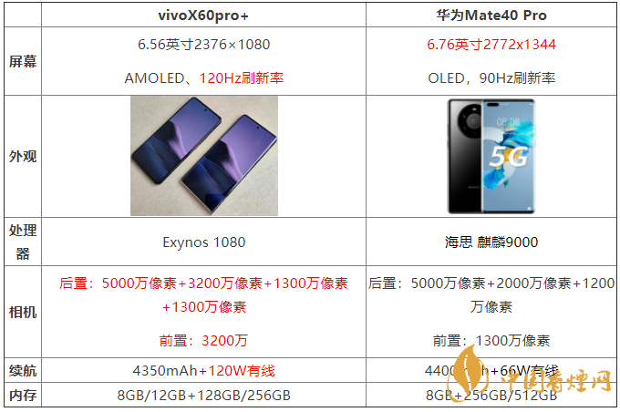 vivoX60pro+和華為Mate40 Pro:兩款手機的電池容量差不多,但vivoX60pro+ 的120W快充速率更強大。