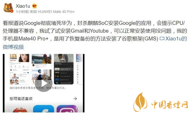 為了驗證這個消息的真實性,數(shù)碼大V Xiao1u驗證了自己的華為Mate40 Pro手機,嘗試安裝Gmail、Youtube都沒問題。即便是國外網(wǎng)友爆料中的谷歌地圖應(yīng)用,Mate40 Pro安裝也沒問題,他表示這可能是下載的APK有問題。