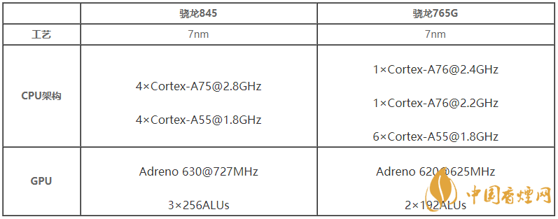 驍龍845:LPDDR4x@1866MHz,16位四通道;驍龍765G:LPDDR4X@2133MHz,16位雙通道