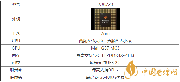 天璣720屬于一款中端芯片,天璣720處理器怎么樣?接下來(lái)香煙網(wǎng)小編今天為大家?guī)?lái)了天璣720詳細(xì)的參數(shù)規(guī)格信息,對(duì)這款天璣720 5G芯片感興趣的朋友不要錯(cuò)過(guò)了哦,快來(lái)看看吧。