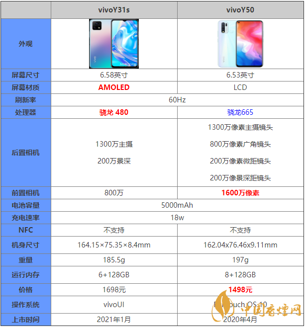 vivoY31s和Y50兩款手機(jī)的性能是非常相近的,都是中低端的手機(jī),vivoY31s和Y50有什么區(qū)別?那么在這兩款手機(jī)中到底是哪一款手機(jī)有著更加好的性能表現(xiàn)呢?下面香煙網(wǎng)小編將對(duì)vivoY31s和Y50參數(shù)對(duì)比進(jìn)行介紹,一起來(lái)看看吧!