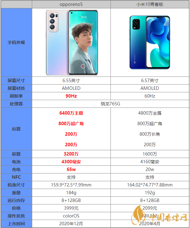opporeno5和小米10青春版都是搭載驍龍765G的手機,那么這兩款手機的之間的區(qū)別是什么呢?哪款手機更值得入手?接下來香煙網(wǎng)小編為大家?guī)碜钚碌膐pporeno5和小米10青春版參數(shù)對比,感興趣的朋友快來看看吧。