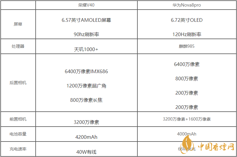 榮耀v40和華為nova8Pro都是中高端5g手機,通過網(wǎng)上曝光的參數(shù)配置來看,二款手機都是非常不錯的手機,那么榮耀v40和華為nova8Pro有什么區(qū)別?哪款手機更值得入手?下面香煙網(wǎng)小編將對榮耀v40和華為nova8Pro參數(shù)對比詳情進行介紹,一起來看看吧!