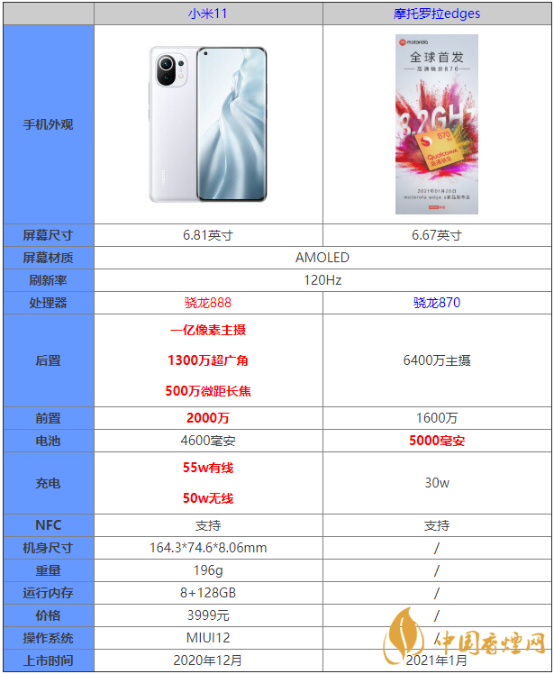 摩托羅拉edges是摩托羅拉即將發(fā)布的新款智能手機(jī),那么這款手機(jī)和小米11的區(qū)別是什么?哪款手機(jī)更值得入手?許多小伙伴對(duì)此都十分好奇,接下來香煙網(wǎng)小編為大家?guī)碜钚碌哪ν辛_拉edges和小米11參數(shù)對(duì)比,快來看看吧。