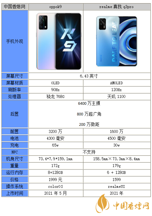 以上就是小編收集到的OPPOK9和真我Q3Pro哪個好-OPPOK9和真我Q3Pro參數對比的相關內容,以上內容均來源于網絡,僅供參考,一切以實際為準,更多最新數碼資訊請關注香煙網。