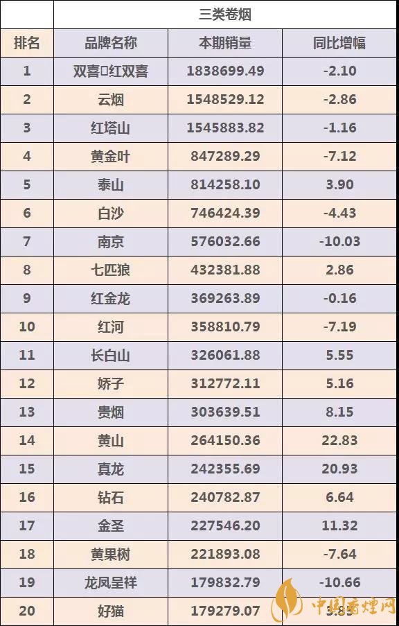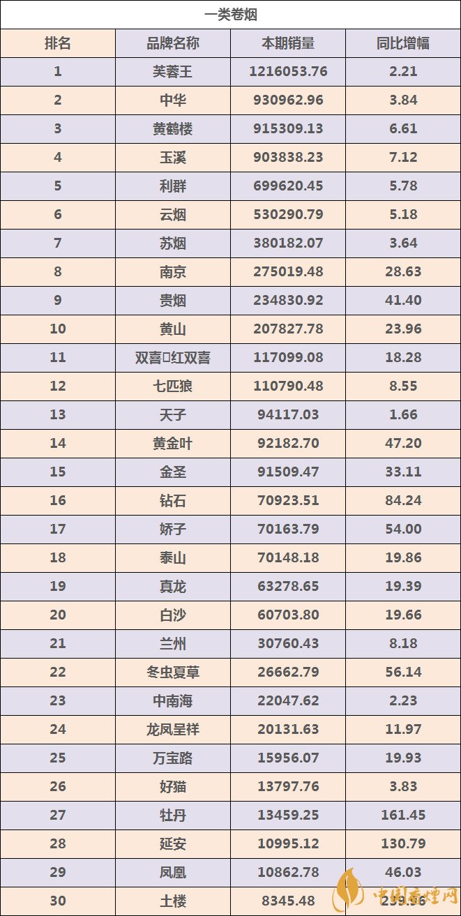 2018年煙草行業(yè)都在全力推動煙草行業(yè)高質(zhì)量發(fā)展,奮力把煙草行業(yè)各項工作推上一個新臺階。煙草行業(yè)在改革發(fā)展過程中“高質(zhì)量發(fā)展”成為重中之重,而在此過程中消費升級環(huán)境下的“結(jié)構(gòu)提升”更顯作用突出。那么大家最關(guān)心的卷煙品牌銷量情況如何呢?下面就由香煙網(wǎng)小編帶大家一起來了解一類煙卷煙品牌TOP30強的基本情況: