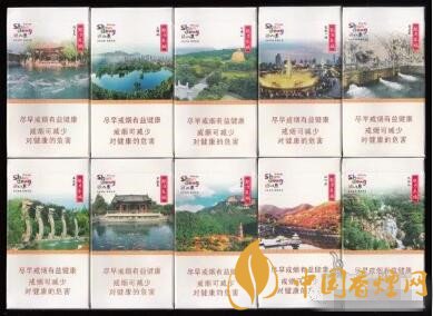 濟(jì)南十景名稱:趵突泉、大明湖、千佛山、泉城廣場(chǎng)、黑虎泉、五龍?zhí)丁倜}泉、靈巖寺、紅葉谷、九如山。濟(jì)南十景的包裝與“青島十景”的差別比較明顯,兩個(gè)側(cè)面全部采用金色。另外,警示語(yǔ)位置正版明顯偏上。