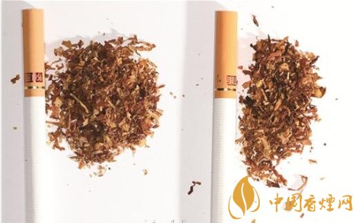 真煙煙絲切絲寬度與長度適中均勻,顔色呈橘黃色,光澤油潤性好,柔軟疏松,煙絲中含碎末少,煙絲結構為葉絲、膨脹梗絲和造紙法再造煙葉;假煙制絲工藝粗糙,一般使用未經(jīng)處理的劣質(zhì)煙絲,色澤發(fā)暗無光澤,呈暗褐色,煙絲中含碎末較多,煙絲結構一般為葉絲和沒有經(jīng)過膨脹處理的梗絲,無造紙法再造煙葉,煙絲結構與真品特征存在明顯差異。