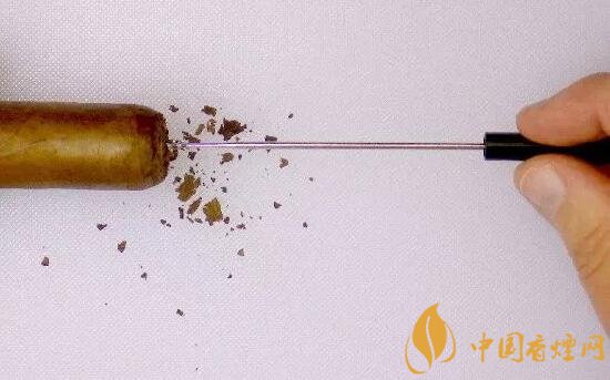 通氣針樣子很簡單,就是一個帶有把手的細(xì)長的金屬針,有些針的頭部帶有螺旋或者鋸齒。使用的時候一手拿著雪茄,一手拿著通氣針,用針插進雪茄頭部稍微旋轉(zhuǎn)一下,插進去的深度一般到雪茄中部就可以了,根據(jù)透氣情況,可以多插幾次,一般透氣性就能有很好的解決了。那種頭部帶鋸齒的通氣針雖然對通氣有比較好的處理,可是非常暴力,幾乎是在雪茄內(nèi)部旋出一個洞,一般情況還是建議不要使用。
