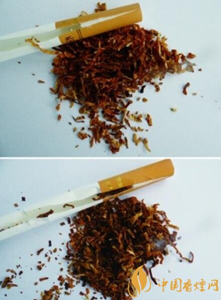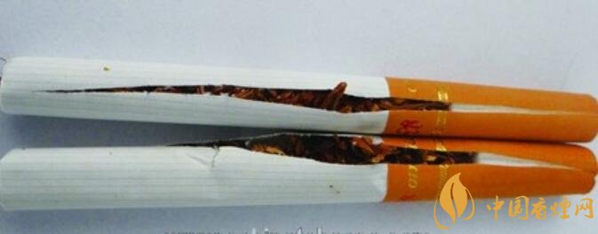 真品煙支濾嘴棒25mm,煙絲顏色為金黃,煙絲彈性好,添加中草藥提取物“豐和液”,具有特殊香味;假煙煙支濾嘴棒只有19mm,煙絲含末量大,煙絲顏色多為褐黃色,煙絲添加大量化學(xué)香精香料,香味刺鼻,與真品存在明顯差異。