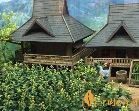 在中國煙草博物館農(nóng)業(yè)館中,有一個以云南吊腳樓為背景設(shè)計的雕塑場景,展示了香料煙在當?shù)胤N植(如圖)、采摘、曬制、分級加工的過程。