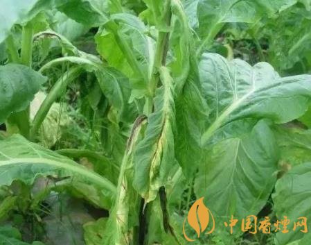 癥狀:煙草青枯病是維管束病害,典型癥狀為枯萎,病株多為一側(cè)枯萎,拔出后可見(jiàn)發(fā)病的一側(cè)支根變黑腐爛,未顯癥的一例根系大部分正常。葉片發(fā)?。撼跗谲浕?,但仍為青色,故稱(chēng)“青枯病”,隨著細(xì)菌充滿(mǎn)葉脈,兩天后葉脈變黑,葉內(nèi)為黃色網(wǎng)狀病斑。莖發(fā)?。撼霈F(xiàn)長(zhǎng)形黑色條斑,有的條斑擴(kuò)展到病株頂部或枯萎的葉柄上。到發(fā)病中后期,全部葉片萎蔫,條斑表皮變黑腐爛,病株莖和葉脈導(dǎo)管變黑,根部也變黑腐爛,甚至莖髓部呈蜂窩狀或全部腐爛形成空腔,僅留木質(zhì)部。橫剖病莖用力擠壓切口,從導(dǎo)管溢出黃白色菌膿。