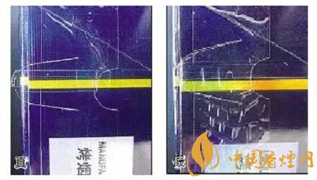 真煙壓邊準(zhǔn)確,印刷清晰;假煙燙金粗糙。