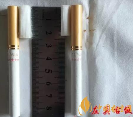左真右假,正品香煙的煙支長度為24mm,假冒的香煙長度為22mm,煙支長度是不一樣的。
