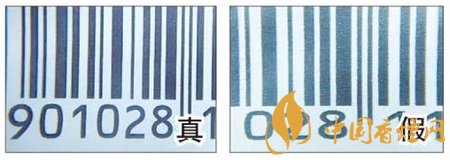 真煙:放大鏡下,條形碼黑白顏色交界處平滑且鋸齒狀不明顯。假煙:條形碼黑白顏色交界處鋸齒狀明顯。