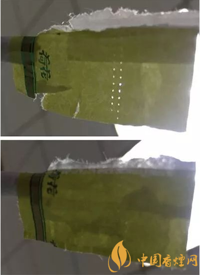 假煙接裝紙雖然也有2排打孔,但孔洞較小且未打透,孔點排列不規(guī)則。